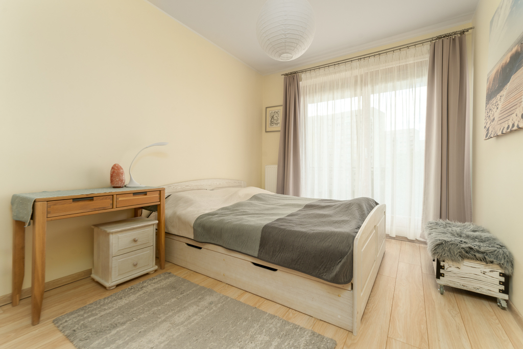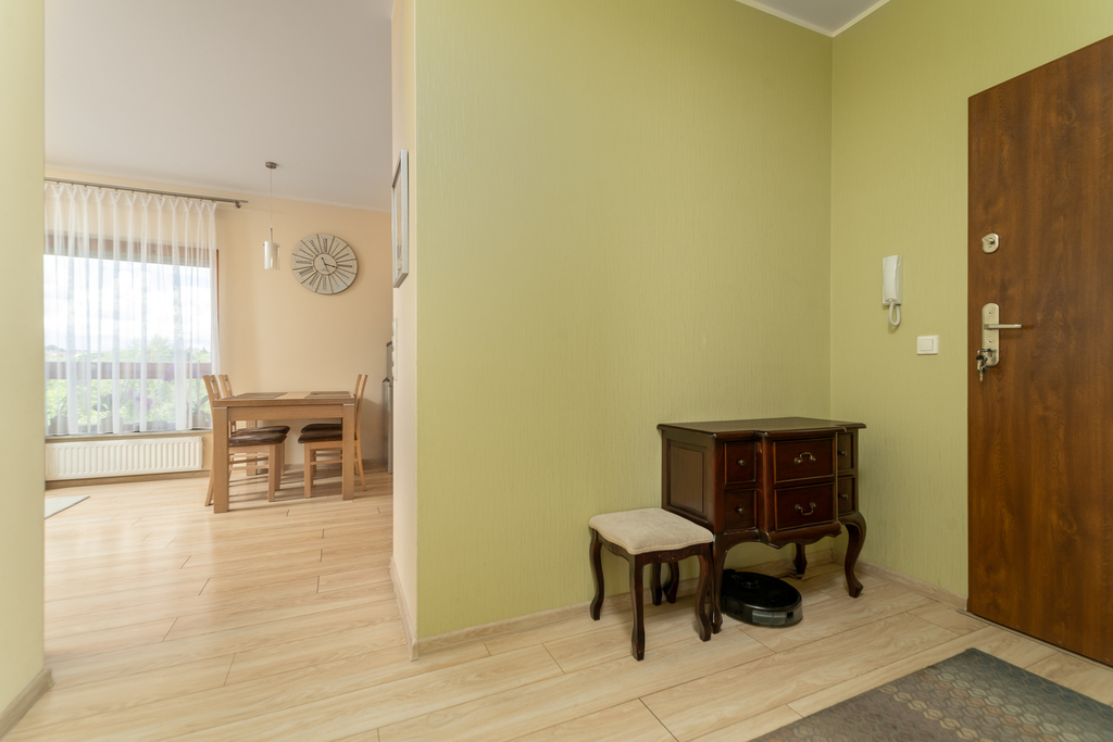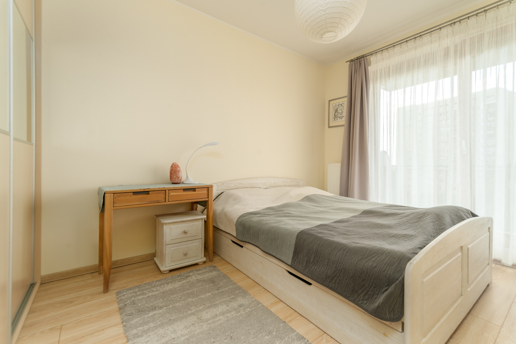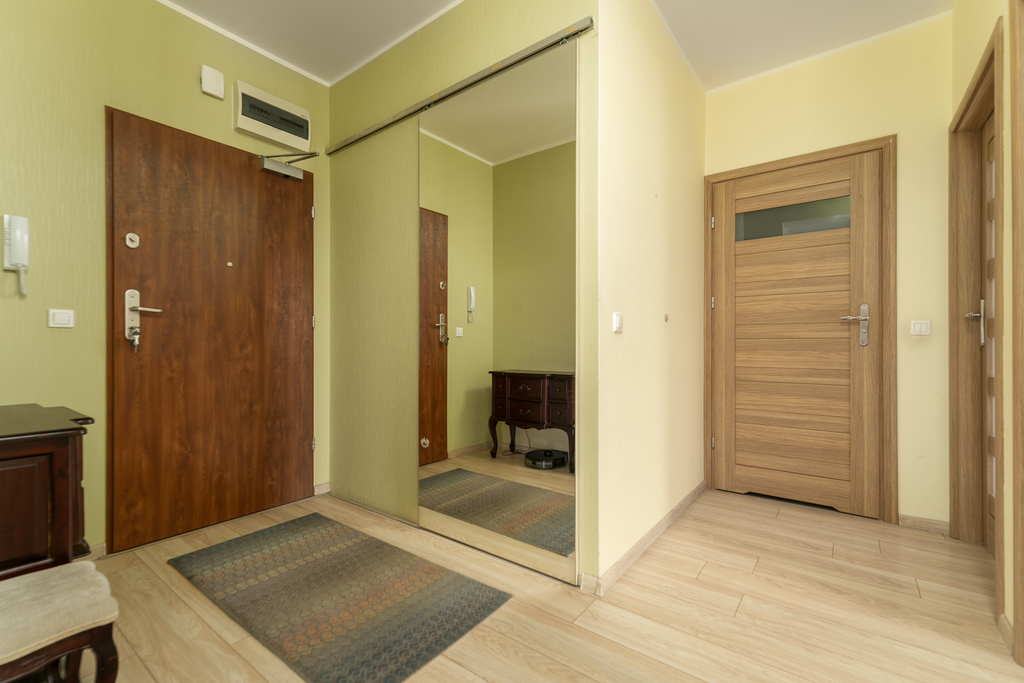 Mieszkanie jest wykończone wysokiej jakości materiałami, zabudowa w sypialni i pokoju meblami na wymiar typu Komandor, podłoga w pokojach i przedpokoju - panele, stolarka drzwiowa renomowanej firmy.