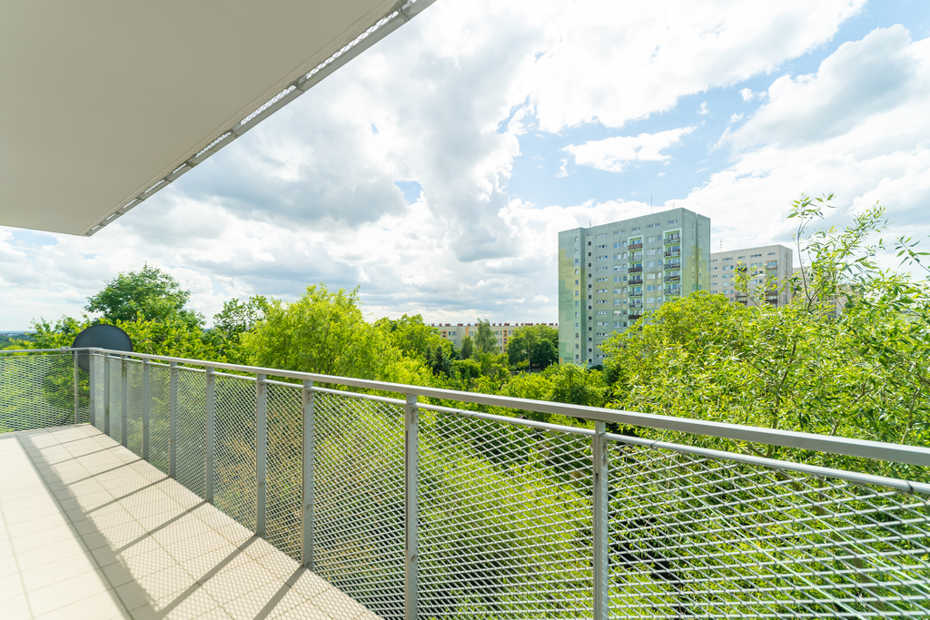 Z pokoju dziennego, sypialni i pokoju przewidziano wyjście na bardzo duży balkon, który tym samym idealnie integruje się z całym mieszkaniem.