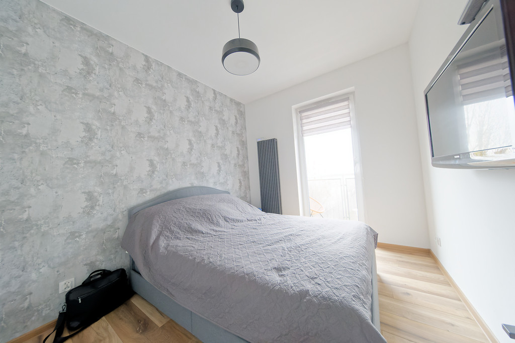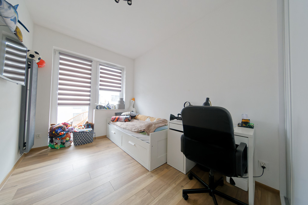 W obu pokojach znajdują się szafy wykonane na wymiar oraz wyjścia na balkon o powierzchni 4m².