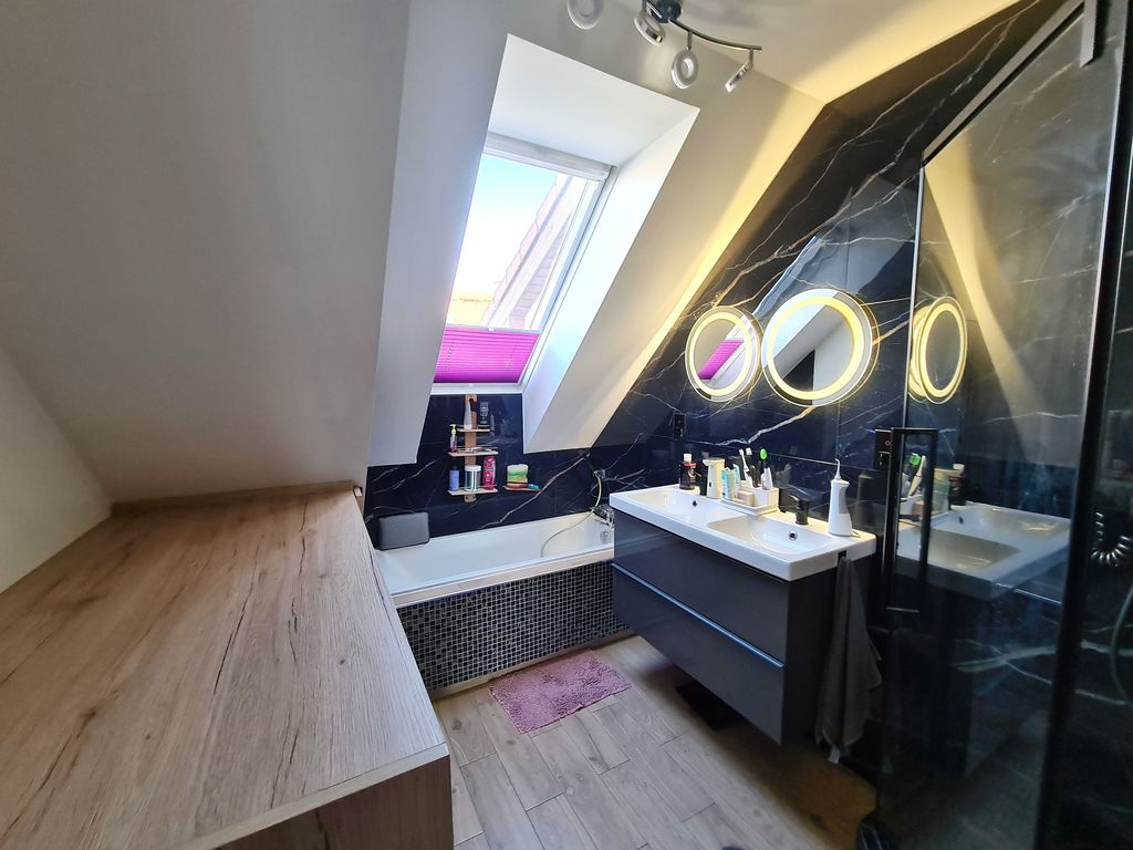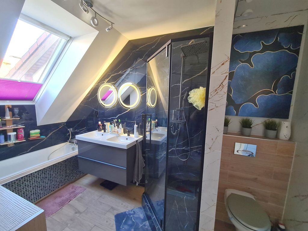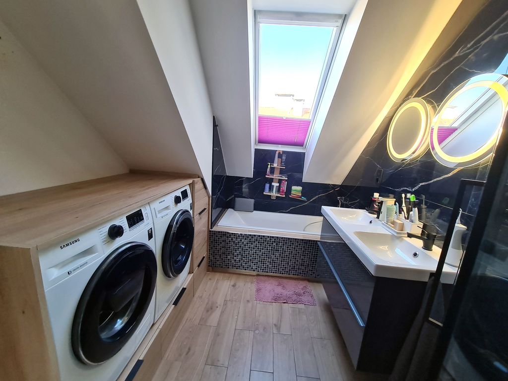 - Na poziomie drugim znajdują : duża sypialnia z nową klimatyzacją LG) oraz przejściowy pokój w formie otwartej przestrzeni, który nadaje się zarówno na małą siłownię jak i biuro oraz ma dwie niezależne garderoby w zabudowie stolarskiej.