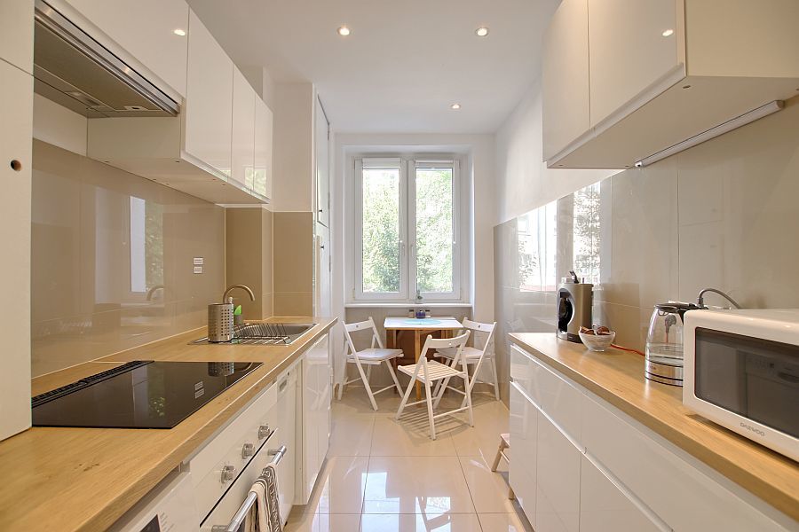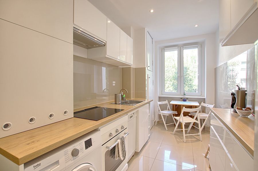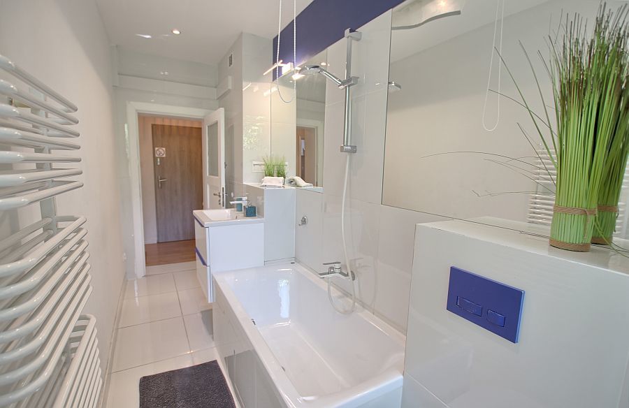 W mieszkaniu znajduje się jasna, przestronna kuchnia a także duża łazienka z oknem i wanną, w której możesz zaznać przyjemnych kąpieli po wyczerpującym dniu.