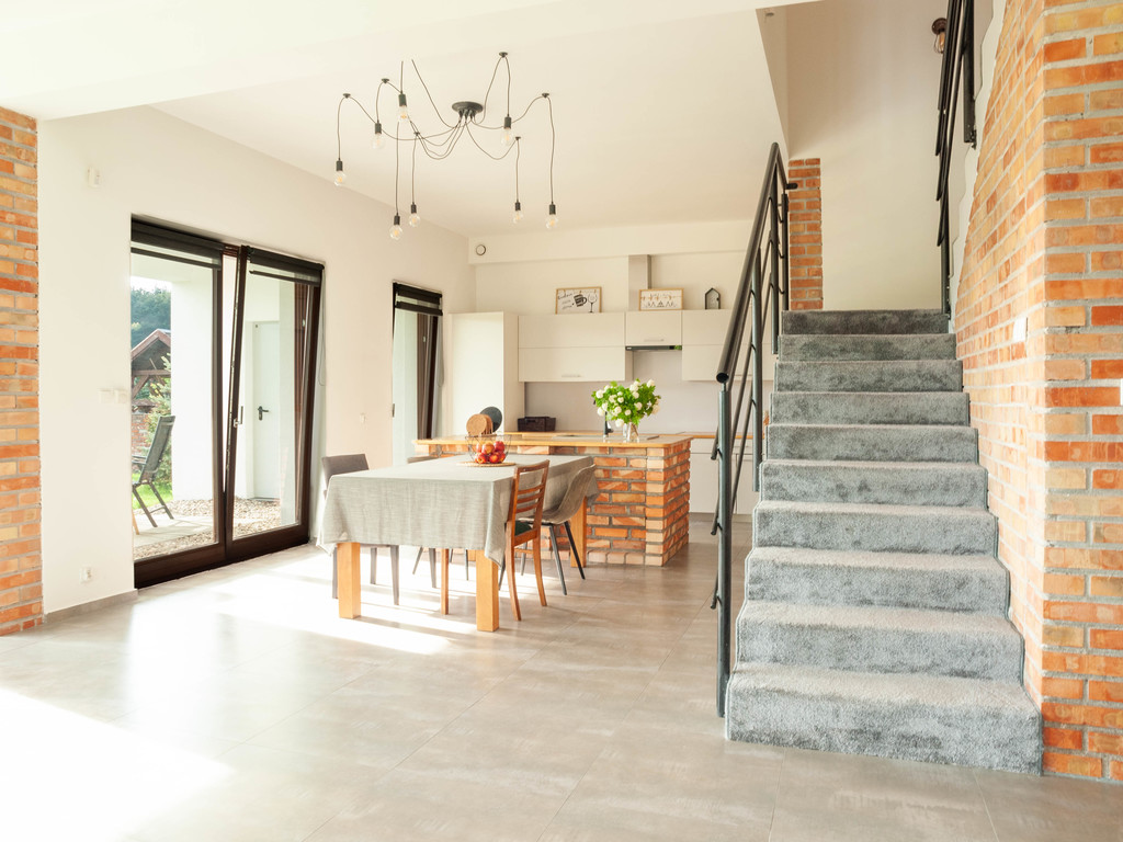 => Wysokie wnętrza na parterze (trzy metry wysokości).