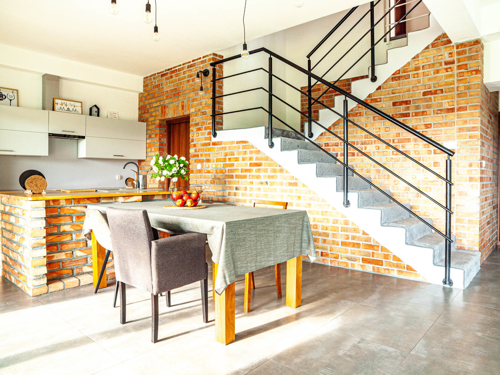 => Odsłonięte ściany z cegły pełnej.