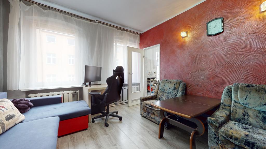 Mieszkanie znajduje się w drugiej linii zabudowy na trzecim piętrze zadbanej oficyny. Powierzchnia użytkowa 40,14 m2, na którą składają się 2 pokoje, kuchnia, łazienka i przedpokój.