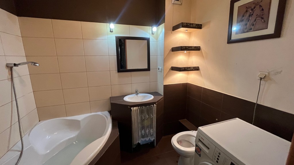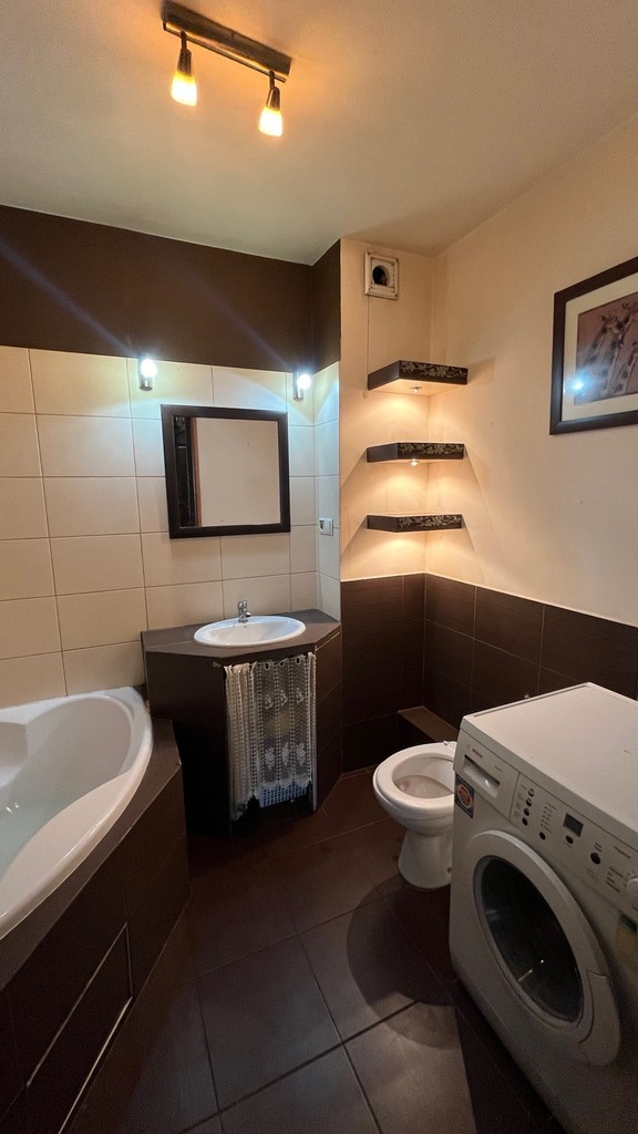 mieszkanie w pełni umeblowane, szafy w z zabudowie. Część kuchenna w zabudowie z niezbędnym sprzętem AGD. W łazience duża wanna, umywalka i WC.
