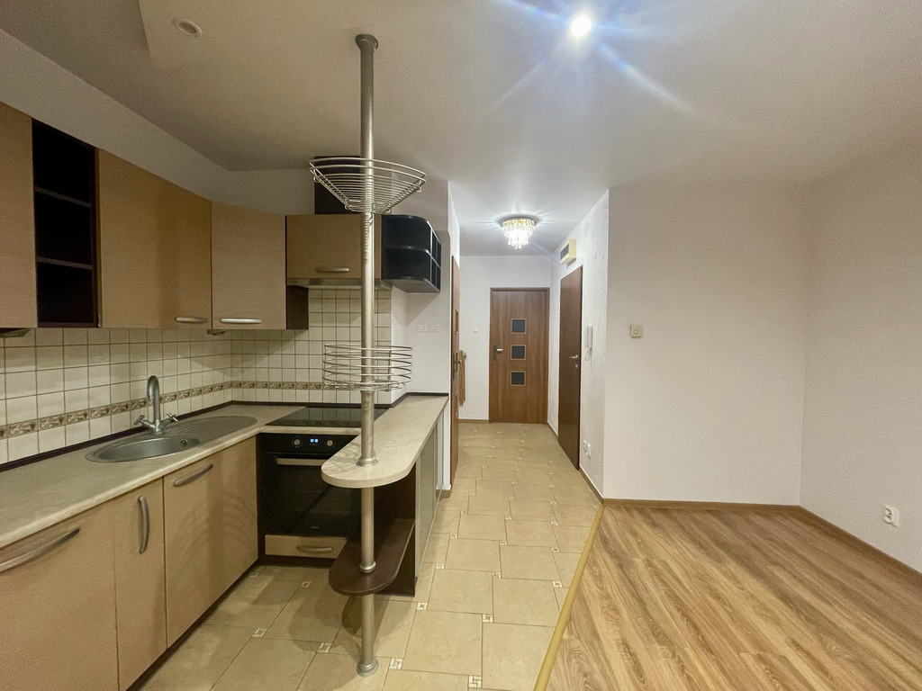 Mieszkanie prócz mebli kuchennych, sprzętu AGD, pralki i TV nie posiada mebli.
