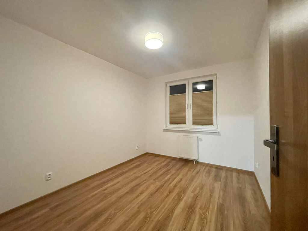 Podłoga częściowo panele, częściowo gres, ściany malowane na biały kolor.