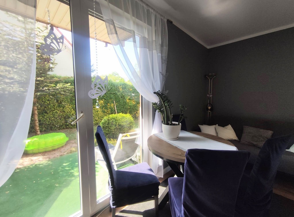 - salonu z aneksem kuchennym z wyjściem na duży ogród
