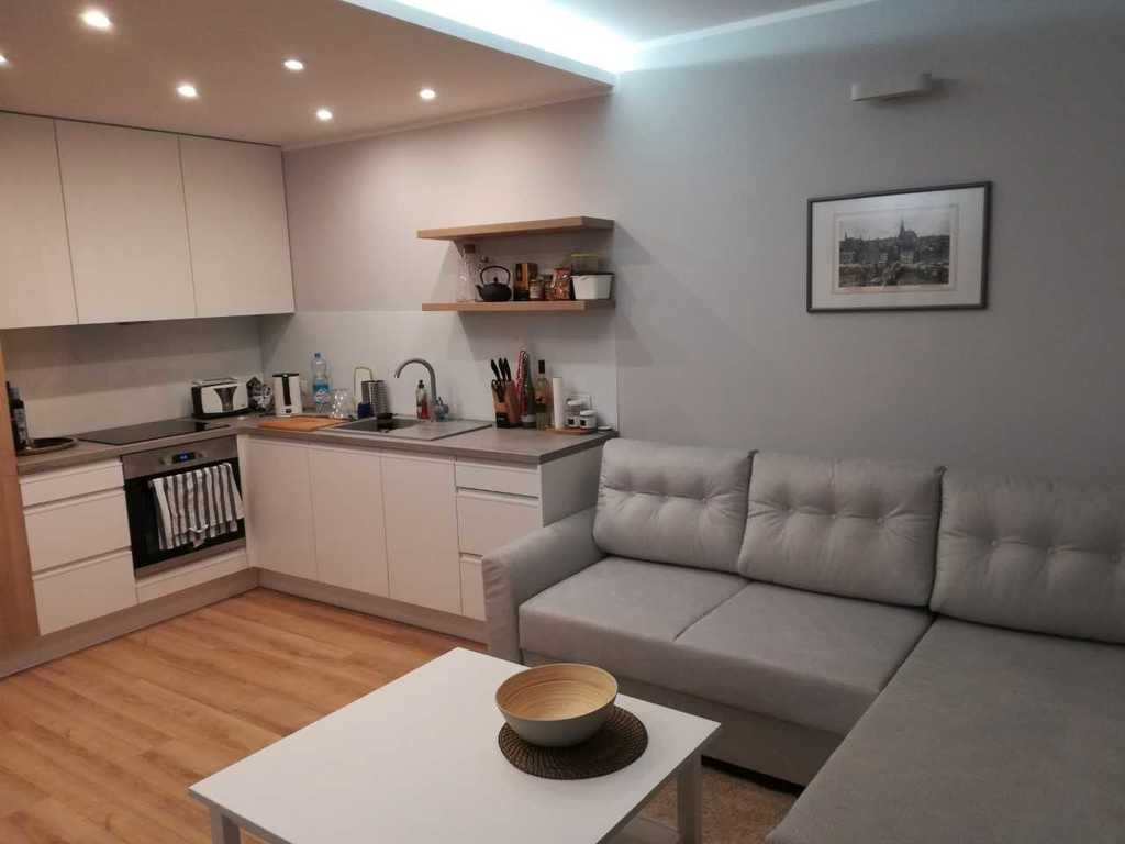 Mieszkanie składa się z salonu z aneksem kuchennym, sypialni, łazienki i przedpokoju. Mieszkanie jest w pełni umeblowane i wyposażone.