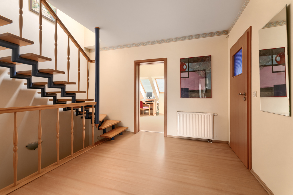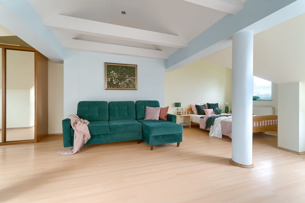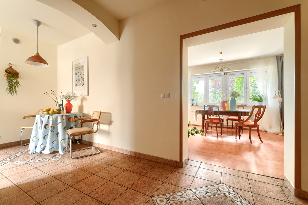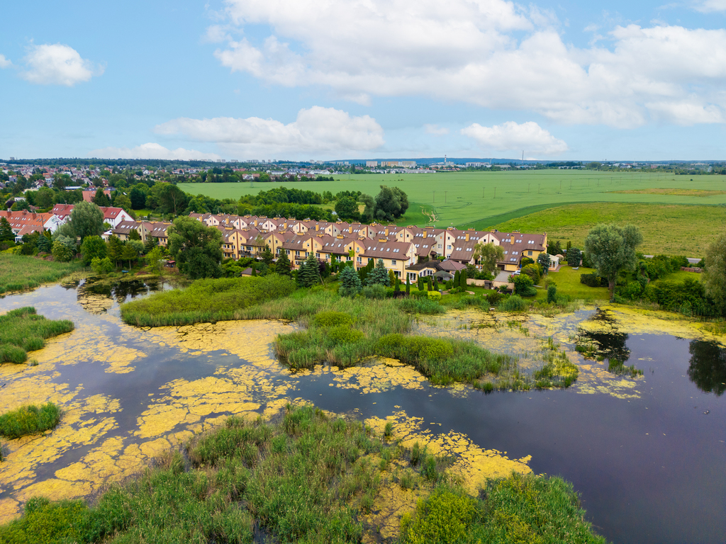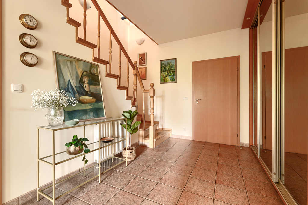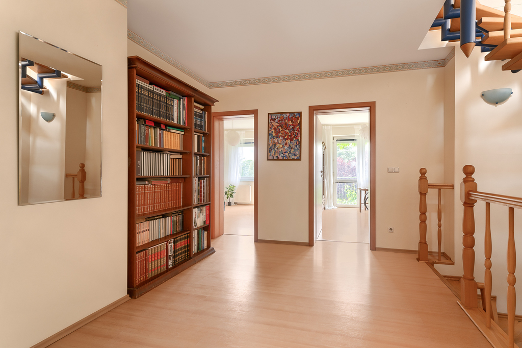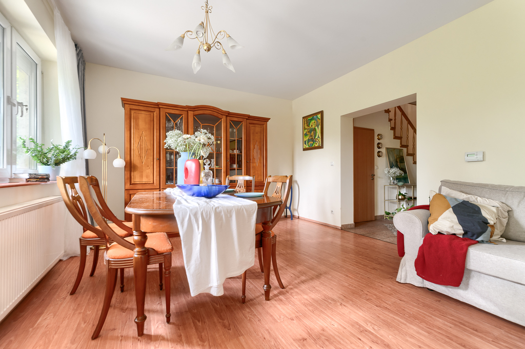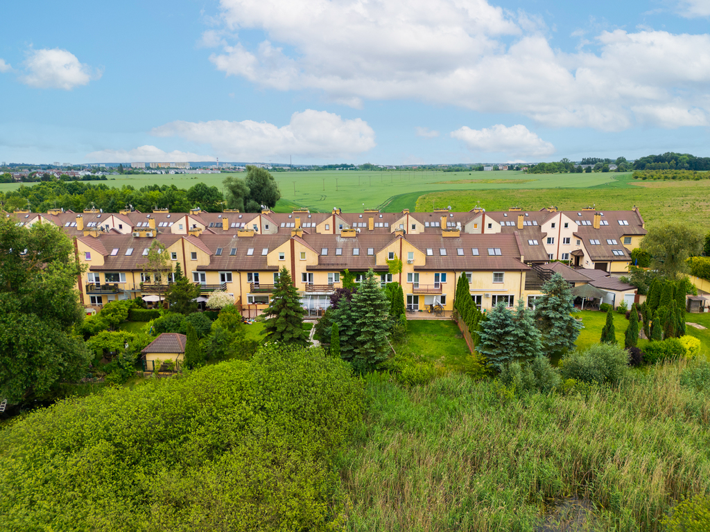 Na powierzchnie użytkową składa się: 5 pokoi, kuchnia, 2x łazienka, toaleta, 3x przedpokój, pomieszczenie gospodarcze oraz garaż. Z salonu wyjście na taras. Z dwóch pokoi na piętrze wyjście na balkon z pięknym widokiem na wodę. Szeregowiec położony na zamkniętym osiedlu w Ostoi na pograniczu dzielnicy Gumieńce. Dom wybudowany w 2000 roku, gotowy do zamieszkania. Idealny dla rodziny z dobrym dostępem do szkoły w Przylepie.