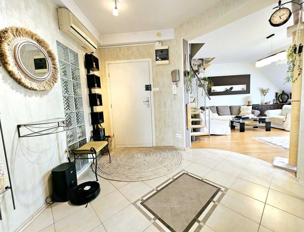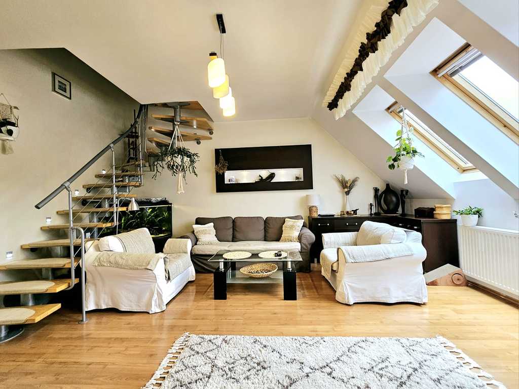 Oferujemy do sprzedania słoneczny i ciepły, dwupoziomowy apartament, usytuowany na drugim pietrze nowoczesnego, niskiego bloku z 2004 roku, znajdujący się w atrakcyjnej lokalizacji Warszewa. Na powierzchnię niemalże 77,6 m2 lokalu mieszkalnego (w rzeczywistości powierzchnia mieszkania ,,po podłodze" wynosi ponad 120 m2!), składają się dwie kondygnację. Pierwszy poziom, stanowi salon z kominkiem (21,4 m2), widna kuchnia (12 m2), Sypialnia (9 m2) z której wychodzi się na przestronny balkon (3 m2), główna łazienka z WC (6,1 m2), garderoba (2 m2) oraz przedpokój (9,4 m2). Na drugim poziomie lokalu, mieści się kolejna, duża sypialnia (13 m2) i następna łazienka (4 m2). Standard mieszkania bardzo wysoki. Atutem nieruchomości - zainstalowana klimatyzacja (zarówno na pierwszym, jak i drugim poziomie lokalu) oraz kominek (z wymuszoną grawitacją). Wykończenia, podłogi, umeblowanie - materiałami wyłącznie bardzo dobrej jakości. W cenie mieszkania pozostaje nowoczesne umeblowanie w zabudowie, a także sprzęt AGD klasy premium (do uzgodnienia). Ogrzewanie i ciepła woda - gazowe (piec 2 - obiegowy). Mieszkanie usytuowane jest na terenie nowoczesnego osiedla o niskiej zabudowie. Doskonała lokalizacja budynku, bezpośrednia bliskość m.in. terenów zielonych, obiektów sportowych, placu zabaw, sklepów, obiektów gastronomicznych, niedaleko szkoła, przedszkole. Nieruchomość również dobrze skomunikowana, bezpośrednia bliskość przystanków autobusowej komunikacji miejskiej. Ogólnodostępny parking przy budynku i na terenie osiedla, zapewniający bezproblemowe, nieodpłatne parkowanie. Dodatkowym atutem - możliwość zakupu w cenie 85.000 zł - dużego garażu (20 m2), znajdującego się w hali garażowej pod budynkiem (na osobnej księdze wieczystej). Czynsz zawierający zaliczkę na zimną wodę, wywóz śmieci, fundusz remontowy i eksploatację części wspólnych wynosi - wynosi około 480 zł miesięcznie. Szybki termin wydania! Serdecznie zapraszam na prezentację!