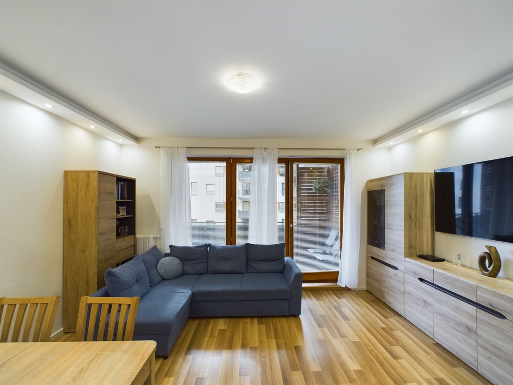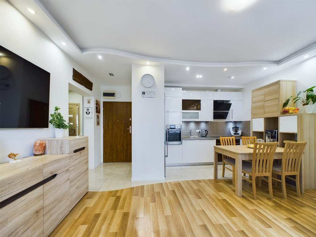 - jasny, przestronny salon z aneksem kuchennym oraz bezpośrednim wyjściem na przestronny balkon