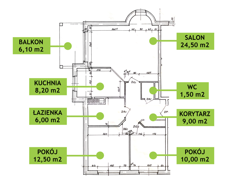 - salon (24,5 m2) z wyjściem na balkon (6,1 m2)