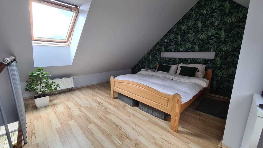 - otwarta przestrzeń - sypialnia.