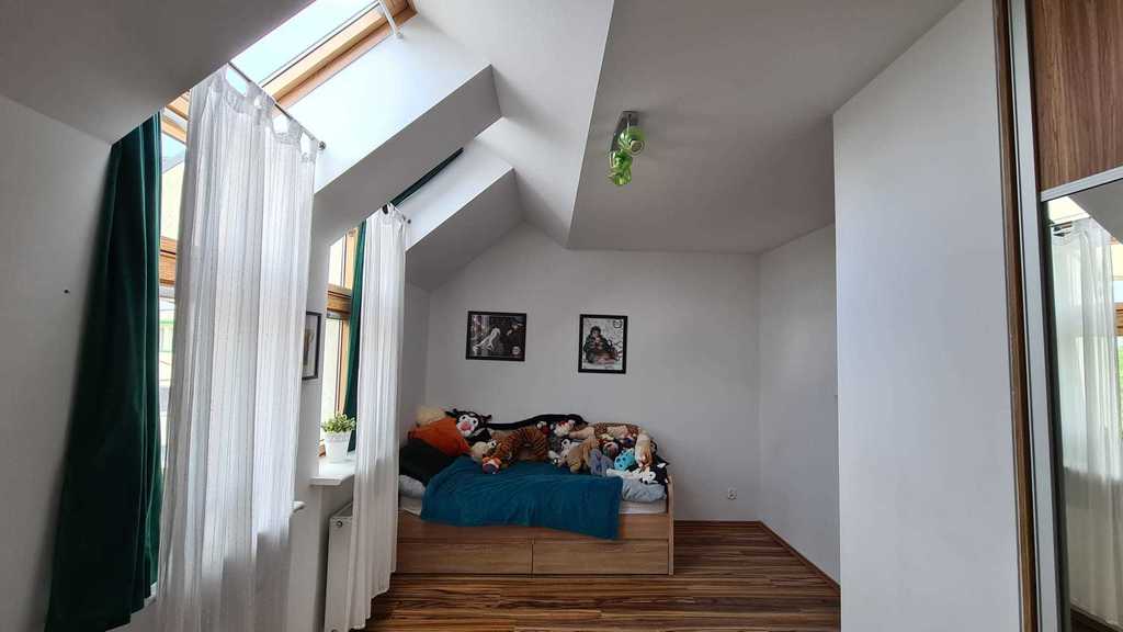 Okna PCV, na drugim poziomie połaciowe.