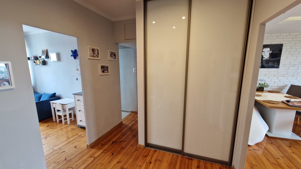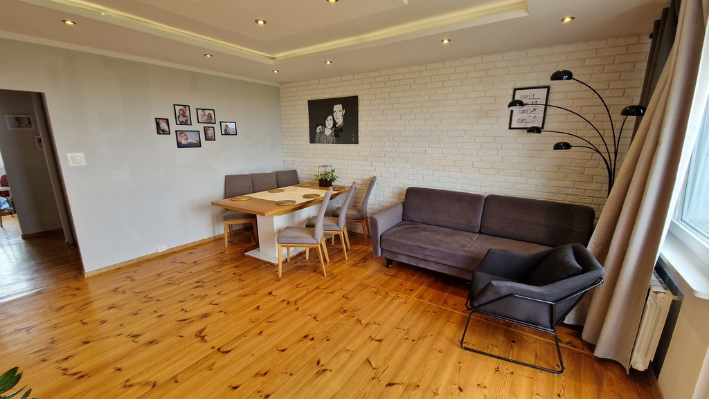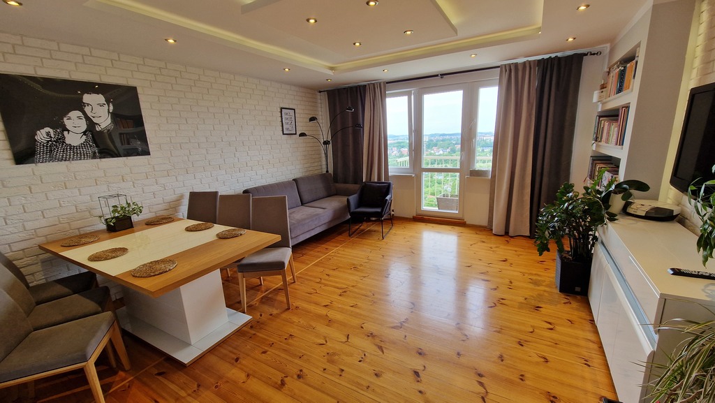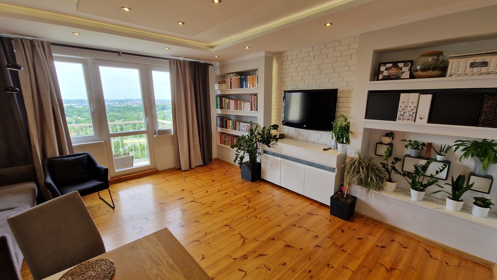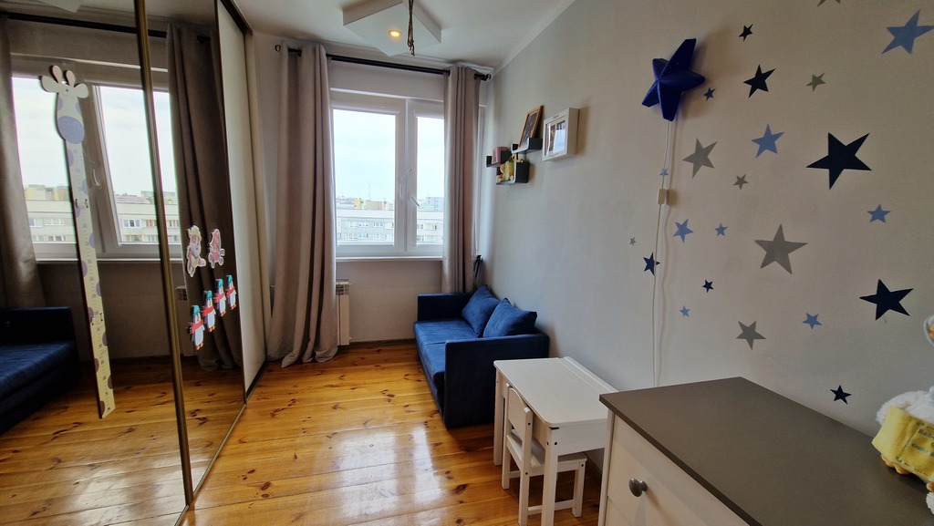 Mieszkanie 3 pokojowe z pięknym widokiem na os. Kaliny, osiedle bardzo cenione ze względu na lokalizację i bardzo dobrą komunikację z centrum Szczecina. Wieżowiec z lat 70 z wyremontowaną klatką schodową, ocieplony i z nową windą. Budynek posiada 11 pięter przedmiotowe mieszkanie znajduje się na 10 piętrze. Powierzchnia mieszkania to 62,2m2 na co składają się 3 ustawne pokoje. Salon z balkonem o powierzchni 23,11m2 z oknami od strony zachodniej i pięknym widokiem, dwie sypialnie od strony wschodniej o powierzchni 10,74m2, i 9m2. W pokojach na podłodze położona deska świerkowa w bardzo dobrym stanie po cyklinowaniu. Kuchnia z oknem również od strony wschodniej o pow. 6,3m2. Łazienka o pow. 3m2 z kabiną prysznicową oraz WC jako osobne pomieszczenie o pow. 1m2. Wszystkie pomieszczenia dostępne z korytarza który jest dwuczęściowy, pierwsza jego część przy wejściu w formie wiatrołapu z zabudowanymi szafami oraz druga cześć również z dużą zabudowaną szafą. Wszystkie okna w mieszkaniu wymienione na PCV (3 szybowe - 5 letnie). Czynsz ok 851zł (w tym zaliczki na ogrzewanie, wodę ciepłą i zimną przy 4 osobach mieszkających). Do mieszkania przynależy piwnica. Mieszkanie nie wymaga większych inwestycji, jest jasne i dobrze doświetlone a dodatkowo z pięknym widokiem.