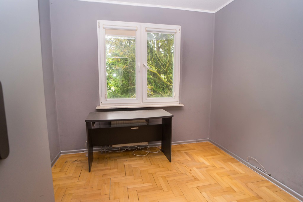 Na podłogach we wszystkich pokojach i korytarzu jest piękny drewaniany parkiet, ściany sa malowane i częściowo tapetowane.