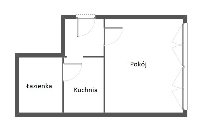 Pokój o pow. ok. 10 m2 z wyposażeniem (stół, dwa fotele). Kuchnia osobna o pow. 3 m2 - na wyposażeniu meble, kuchenka gazowa. Łazienka z kabiną prysznicową o pow. ok. 2,5 m2 - w glazurze i terakocie.