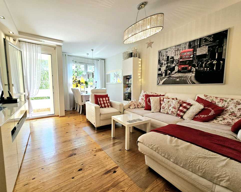 Oferujemy do sprzedania przestronne i słoneczne mieszkanie, znajdujące się na pierwszym piętrze niskiego bloku, usytuowane w atrakcyjnym zakątku osiedla Książąt Pomorskich. Na powierzchnię 59,4 m2 składa się obszerny salon z wyjściem na balkon, widna kuchnia, dwie sypialnie, łazienka z WC oraz przestronny korytarz. Do mieszkania przynależy również duża piwnica. Standard mieszkania - bardzo wysoki. Podłogi wykonano z drewnianych desek, balkon wyłożony kaflami, bardzo słoneczny, świeżo pomalowany (z gniazdkiem elektrycznym). Ściany pomieszczeń pokryte wysokiej jakości farbami. W cenie mieszkania, pozostaje umeblowanie w zabudowie oraz na stałe zainstalowane sprzęty AGD. Dodatkowymi atutami - zabudowana, pojemna piwnica oraz należące do spółdzielni, ale przypisane do lokalu mieszkalnego, indywidualne miejsce parkingowe zamykane na słupek! Doskonała lokalizacja budynku, w zielonej okolicy, bezpośrednia bliskość terenów zielonych i rekreacyjnych, zachowująca równowagę między spokojem a bliskością miejskich udogodnień. W pobliżu również m.in. markety, sklepy, rynek, stacja paliw, punkty usługowo - handlowe, punkty gastronomiczne itd. Nieruchomość również bardzo dobrze skomunikowana, bezpośrednia bliskość przystanków autobusowych, gwarantująca bezproblemowy dojazd do centrum miasta środkami komunikacji miejskiej. Ogrzewanie miejskie, miesięczny koszt czynszu to około - 900 zł (na 4 osobową rodzinę, wliczone zaliczki na wodę, ogrzewanie oraz opłaty administracyjne).