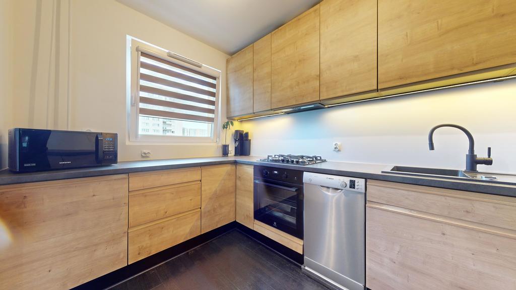 Mieszkanie wykończone przez właścicieli z dbałością o szczegóły przy użyciu wysokiej jakości materiałów i wyselekcjonowanej kolorystyki. Podłogi wyłożone modnymi, ciemnymi panelami a ściany gładkie malowane w kontrastującym jasnym kolorze. Elegancka kuchnia zabudowana meblami na wymiar i sprzętem AGD. Komfortowa łazienka z dużym prysznicem, wc osobno. W sypialniach dwie duże szafy. Ogrzewanie i woda z sieci miejskiej. Wydanie i cena do uzgodnienia.
