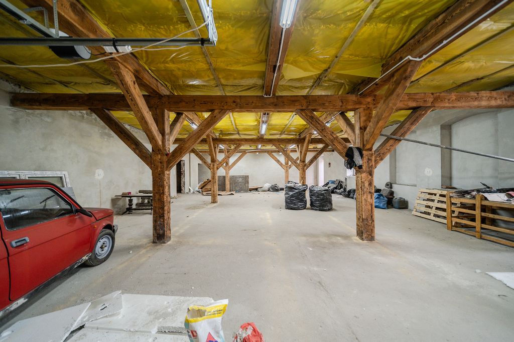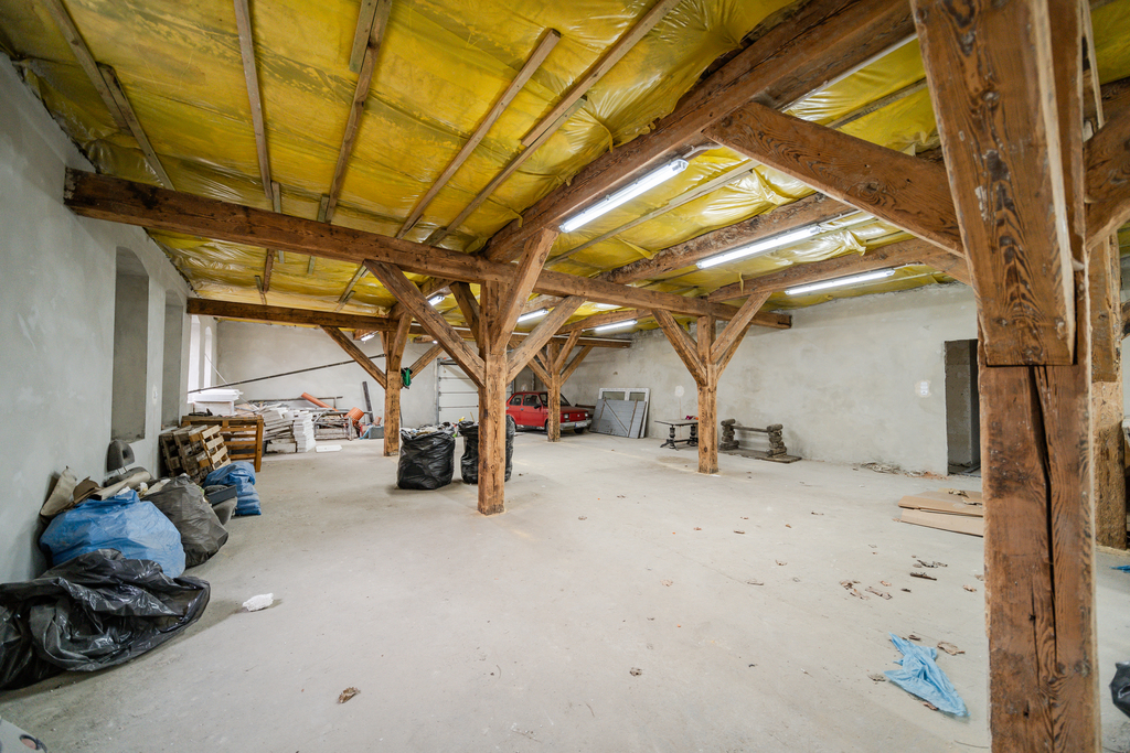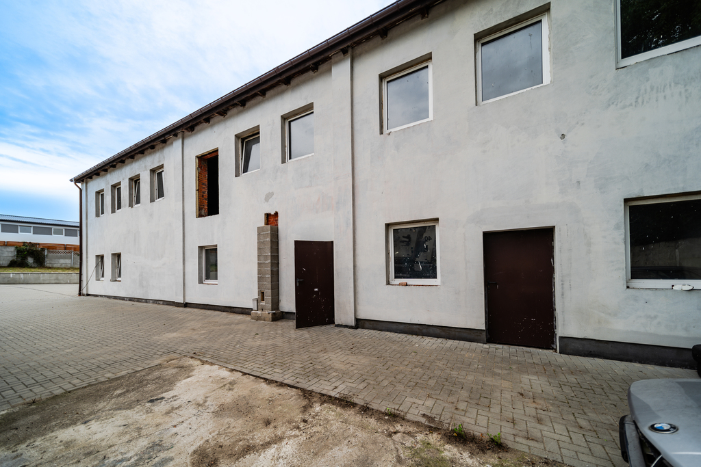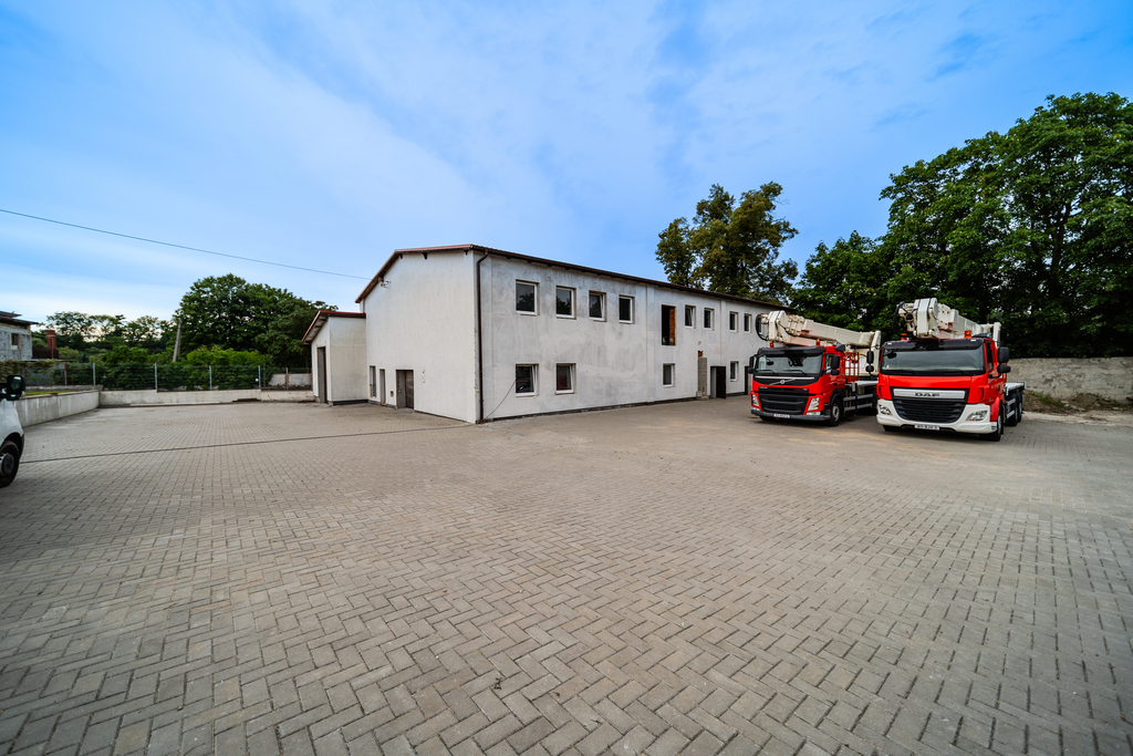 Plac został utwardzony i wyłożony solidną kostką brukową, zużywając aż 1400 m2 tego materiału. To sprawia, że nieruchomość jest gotowa do natychmiastowego użytku, a jednocześnie daje przyszłym właścicielom szansę na dowolną adaptację w zależności od potrzeb. Doskonale nadaje się jako warsztat samochodowy lub magazyn dzięki dużemu, utwardzonemu obszarowi. Nowe bramy garażowe, sterowane na pilota, ułatwiają dostęp do nieruchomości, a wewnątrz budynku znajdują się grzejniki oraz oświetlenie.
