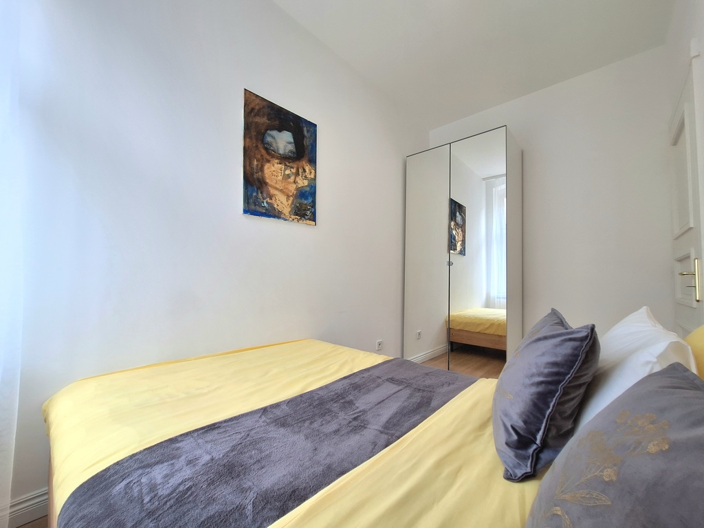 - cicha sypialnia z podwójnym łóżkiem oraz szafą.