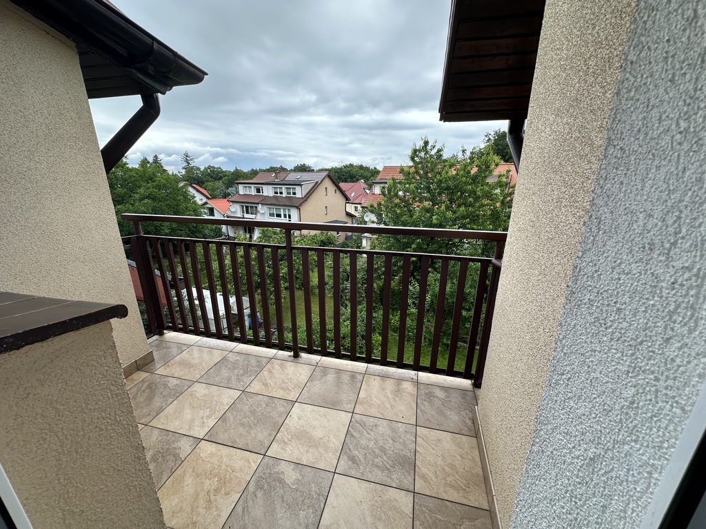 Na piętrze znajduje się jeszcze balkon z widokiem na ogród.