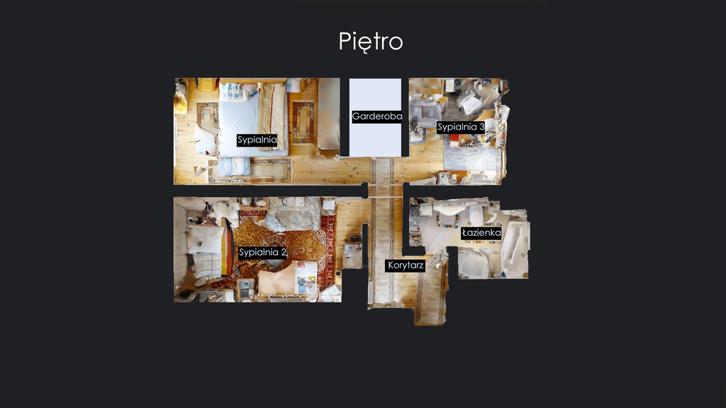 Piętro 1: trzy pokoje 12,8/11,5/10,8m2, łazienka 6,5m2, przedpokój 7,2, klatka schodowa 4,4m2.