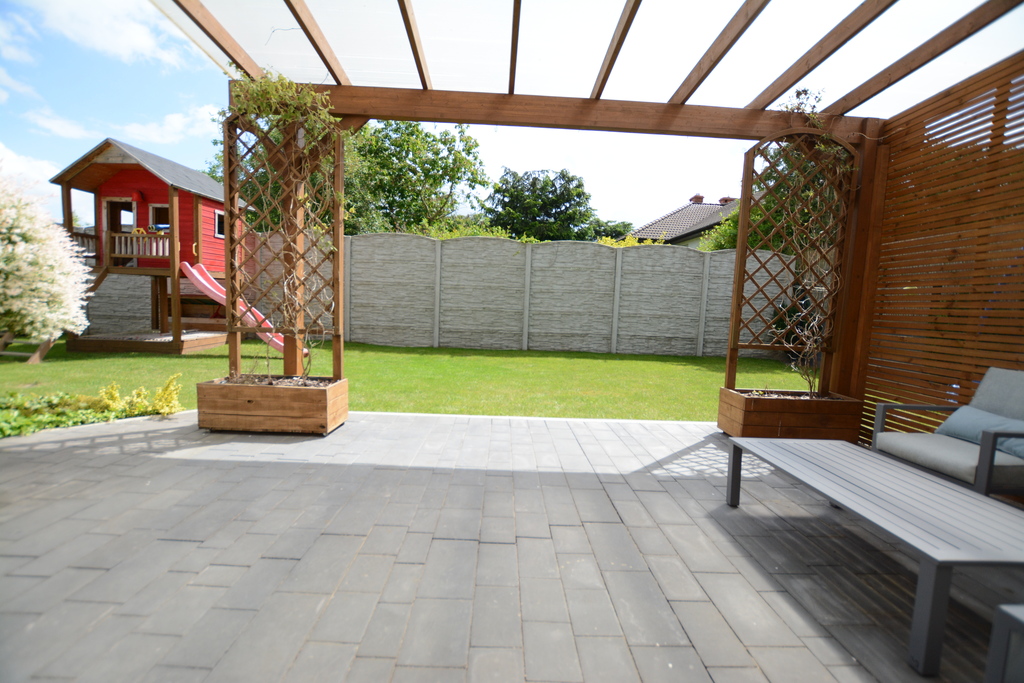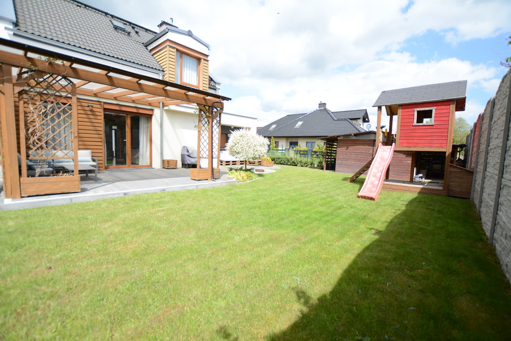 - Działka pięknie zagospodarowana z licznymi nasadzeniami