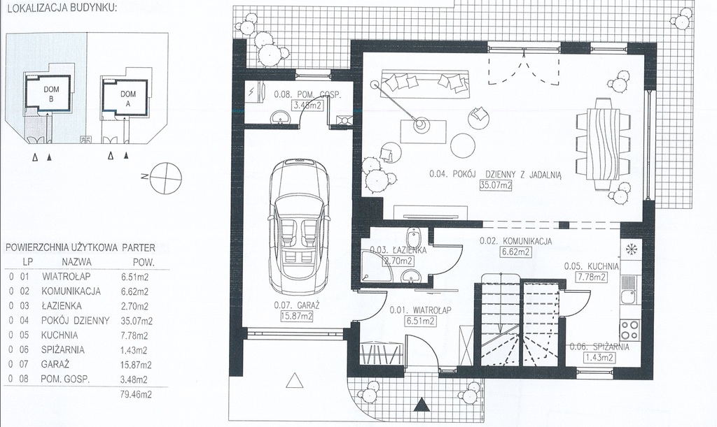 - garaż o pow. 15,87m2 z wejściem do pom. gospodarczego o pow. 3,48m2