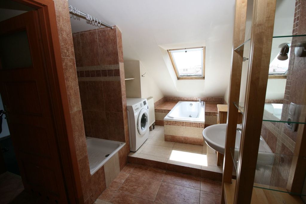 - łazienka z WC z oknem , wanna, kabina prysznicowa, bidet, umywalka,