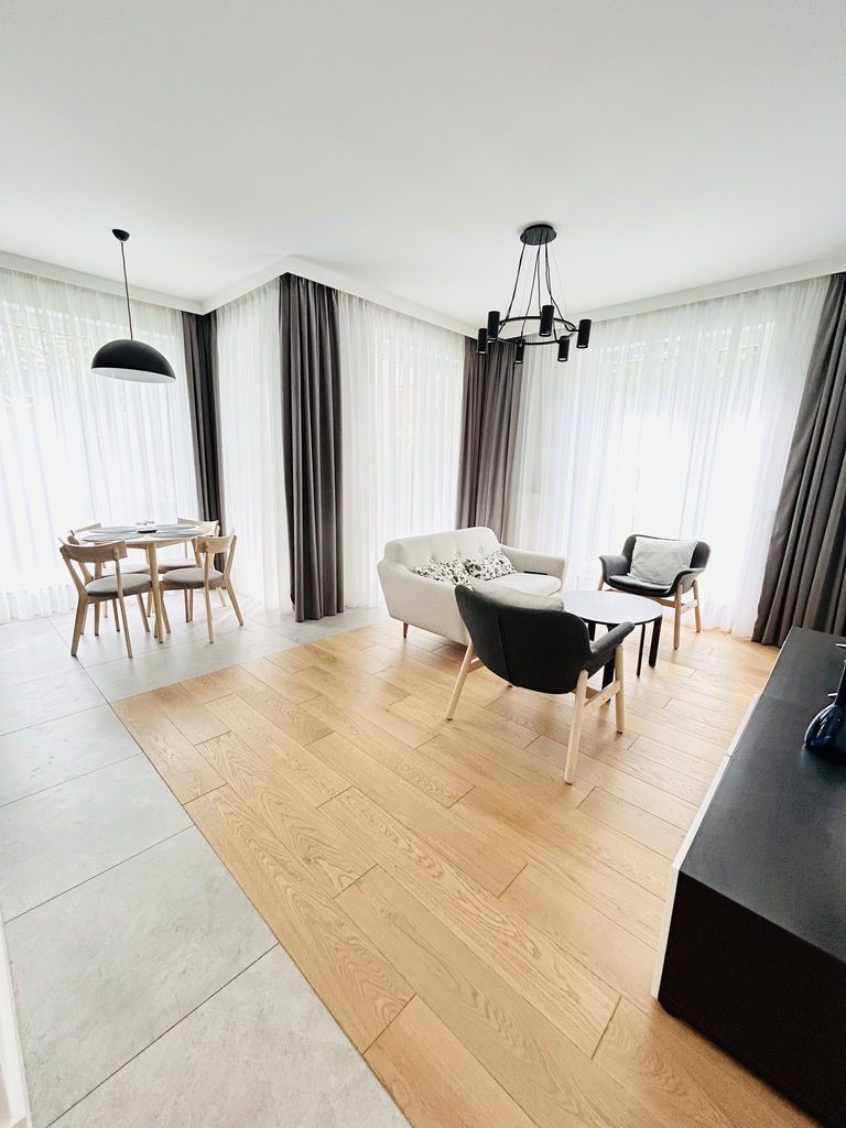 Mieszkanie jest w pełni wyposażone, jasne i przestronne. Do mieszkania przynależy ogród o powierzchni około 100m2 oraz taras.