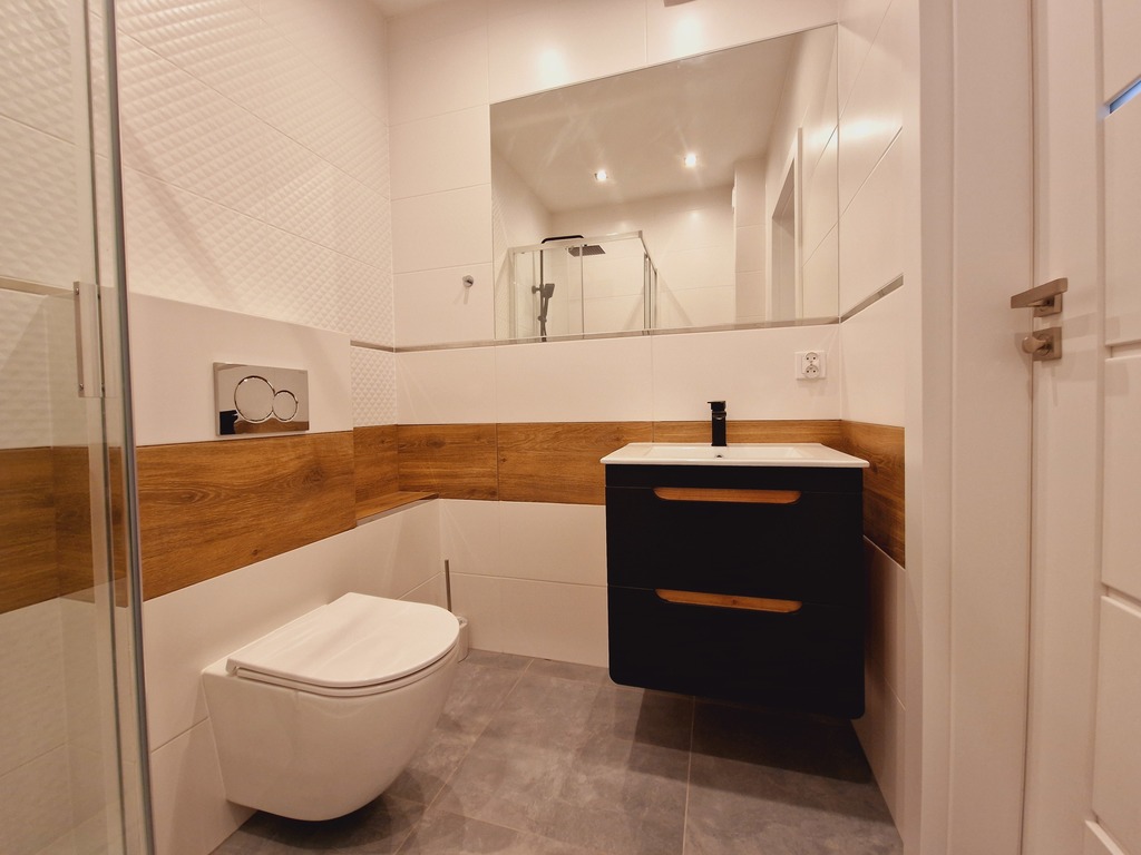 - W pokojach nowe podłogi Winylowe, w kuchni i łazience Gres