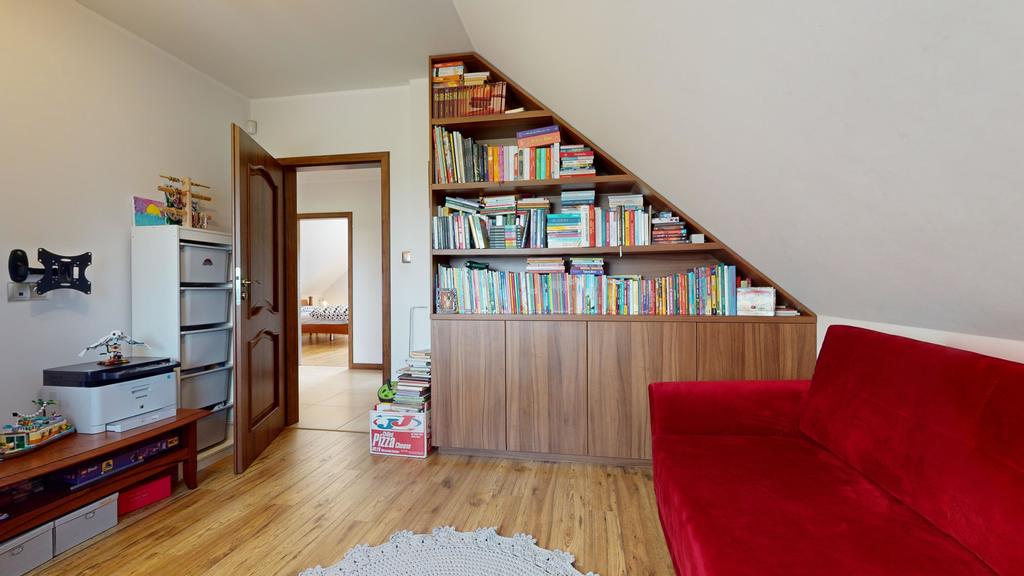 Dodatkowo do zagospodarowania w dowolny sposób cała powierzchnia strychu, ok 100 m2