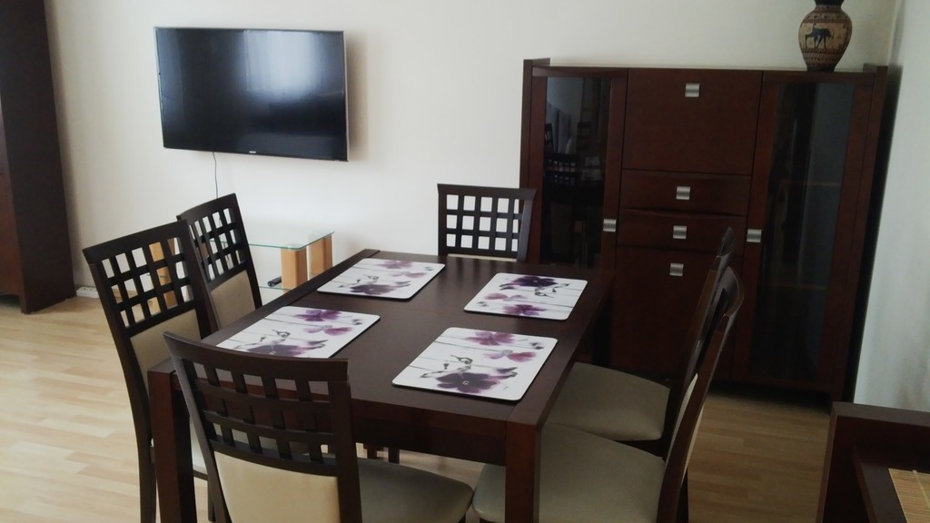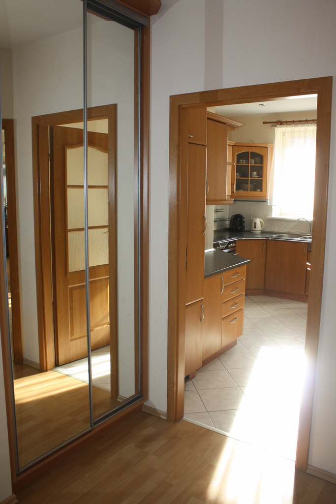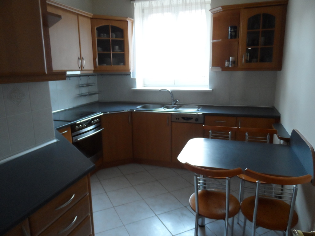 The property is located on the fourth floor of a building with an elevator. The apartment is spacious and bright - the windows on the east and west side. Usable area is 76.4 sqm and it consists of two bedrooms (one currently without furniture, but the Landlords will equip it for the Tenant), large living room (couch shown in pictures will be changed), kitchen (dishwasher, fridge, stove with oven ), bathroom with shower and a hall with two wardrobes. In the building there is no gas - heating and water in the community fee! The apartment has a balcony.