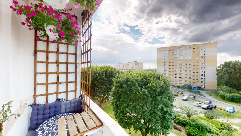 Położone na IV piętrze w wieżowcu XII piętrowym z windą, nowocześnie urządzone 3 pokojowe mieszkanie z BALKONEM .