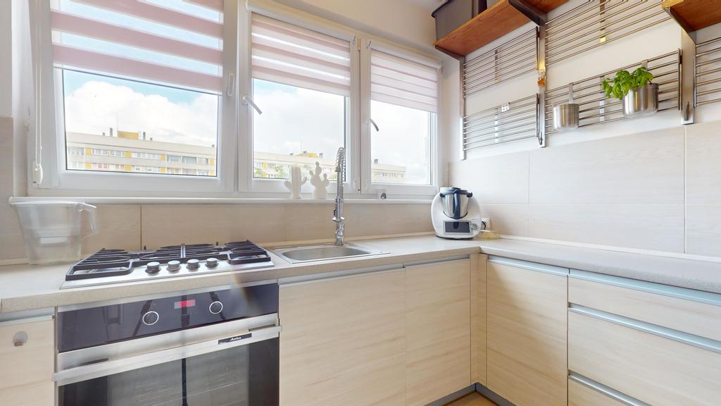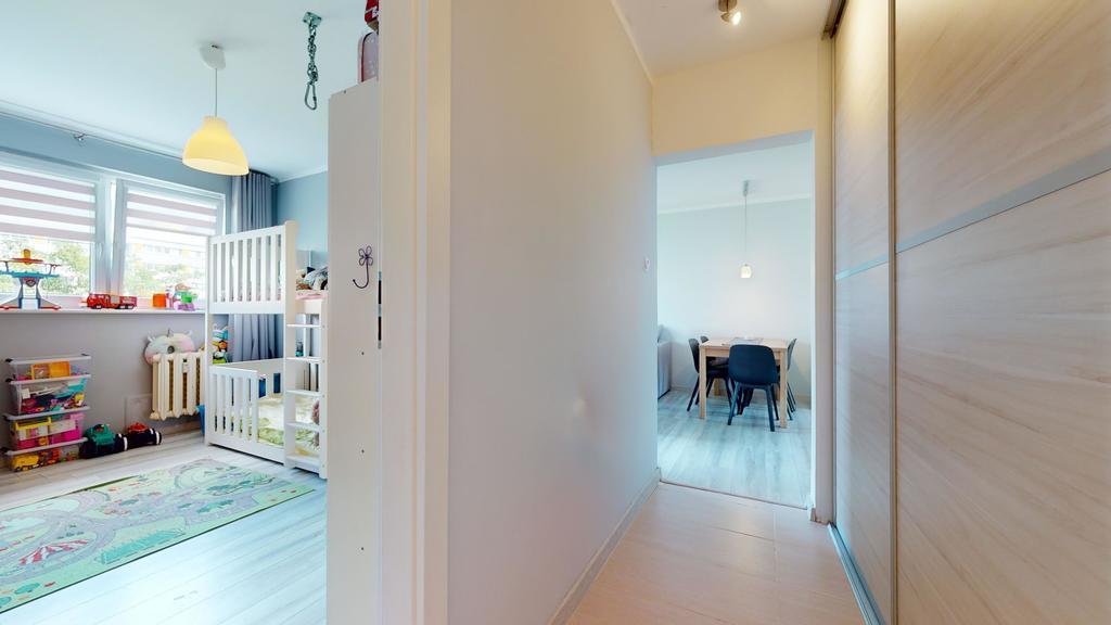 Wyposażenie: kuchnia w zabudowie (wyposażona w kuchenkę gazową i piekarnik Amica, lodówkę LG, zmywarkę Bosch), korytarz: szafy w zabudowie, pokój dziecięcy -zostanie bez umeblowania, salon: pozostają tylko meble w zestawie, bez stolika kawowego, sofy oraz stołu z krzesłami; sypialnia: pozostaje szafa w zabudowie.