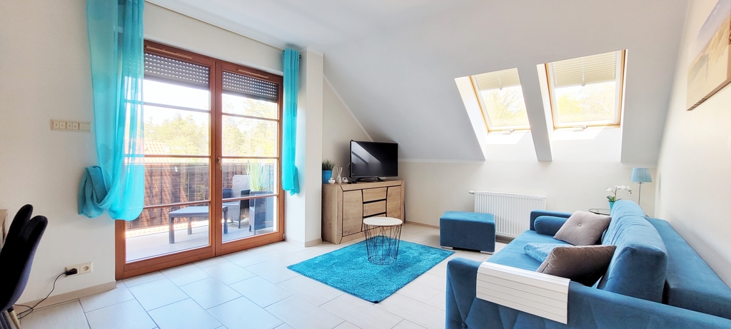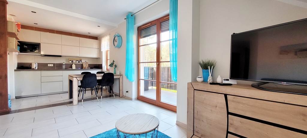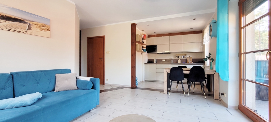 Bardzo atrakcyjny apartament 2 pokojowy na zamknietym, strzeżonym osiedlu w miejscowości Pobierowo w spokojnej okolicy, około 250m od plaży.