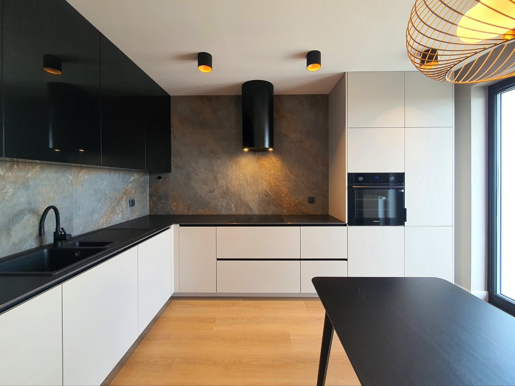 Mieszkanie zostało zaprojektowane ze smakiem i wykonane z dbałością o każdy szczegół, z wykorzystaniem wysokich jakościowo materiałów i sprzętów, z bogatym i różnorodnym oświetleniem.