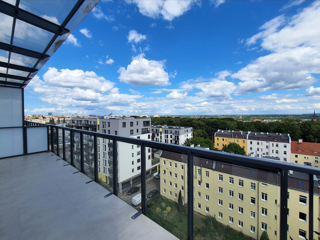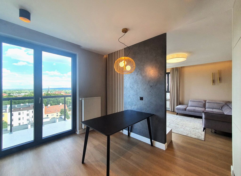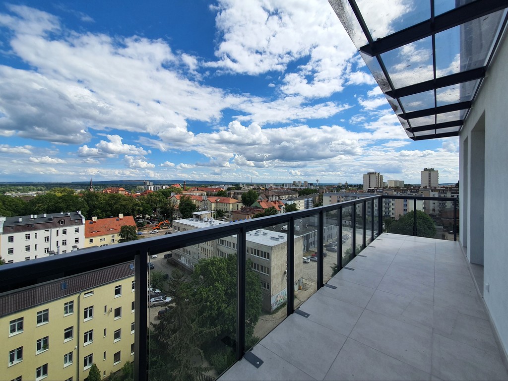 - niespotykanego balkonu o długości prawie 8 m i powierzchni 12 mkw przebiegającego wzdłuż całego mieszkania, z osobnym wejściem z salonu oraz kuchni, z widokiem na niemal cały Szczecin