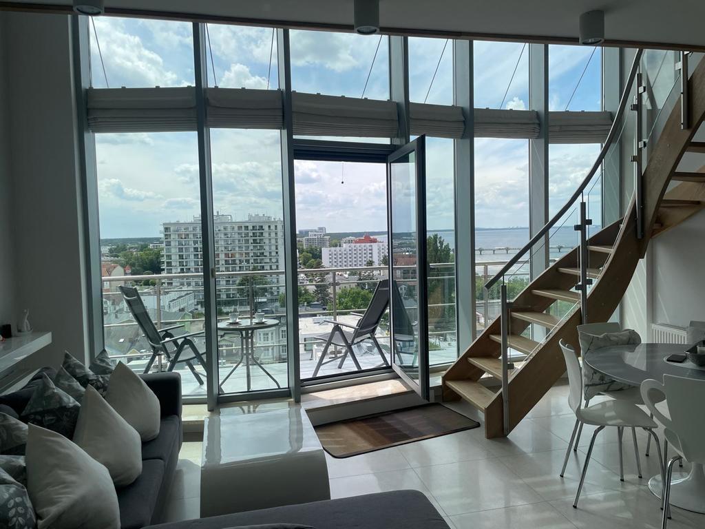 Na sprzedaż piękny, apartament dla najbardziej wymagających klientów. Zlokalizowany jest około 50 m od morza,zarówno z salonu, sypialni i 10m tarasu. Apartament II poziomowy : na pierwszym poziomie ubikacja z umywalką, salon z aneksem kuchennym i wyjściem na taras, na drugim poziomie piękna duża sypialnia z widokiem na morze, tv, duże piękne, zabudowane szafy oraz łazienka z kabiną prysznicową, umywalką, wc i pralką. Kolejnym atutem są piękne, wysokie okna, ponad 6 metrów wysokości. W apartamencie jest klimatyzacja. Meble, podłogi, zabudowy są wykonane z bardzo wysokiej jakości materiałów. Sprzęt agd jest również wysokiej klasy. Do apartamentu przynależy miejsce postojowe w podziemnym garażowcu, do którego zjeżdża się bezpośrednio windą. Na dachu znajduję się basen, sauna, taras widokowy na panoramę miasta i morze. W budynku jest się ochrona całodobowa. Apartamentowiec znajduje się blisko licznych lokali gastronomicznych i wioski rybackiej. Czynsz w którego skład wchodzi: fundusz remontowy, ogrzewanie, ochrona całodobowa, sprzątanie wynosi ok 1280 zł. Serdecznie zapraszam na prezentację.