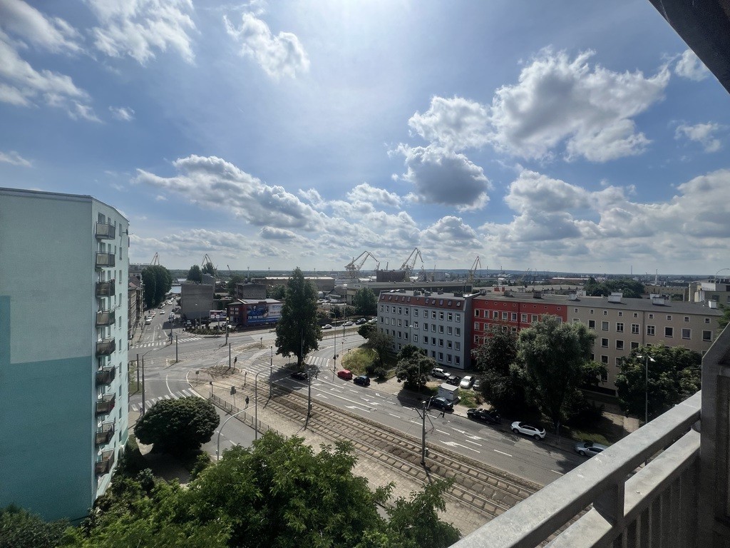Mieszkanie położone na VII piętrze znajduję się w bliskiej okolicy centrum, Wałów Chrobrego a także wydziałów Akademii Morskiej