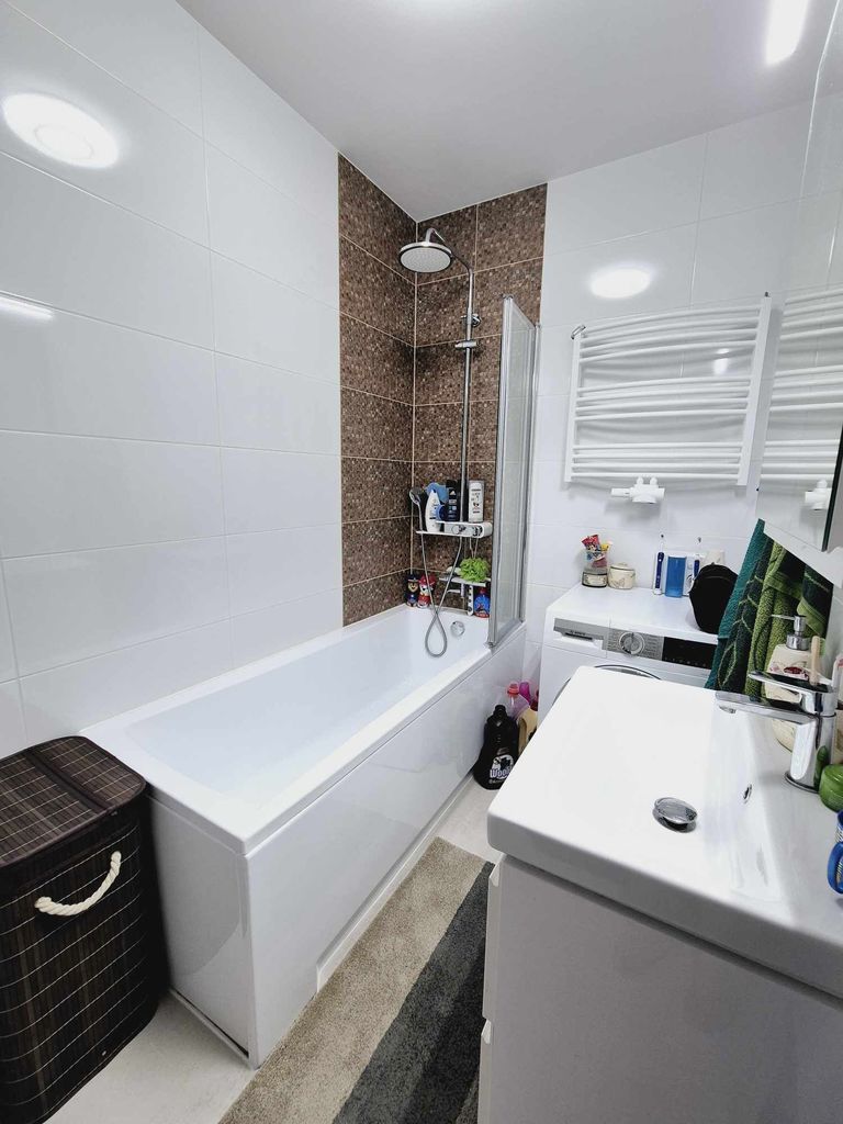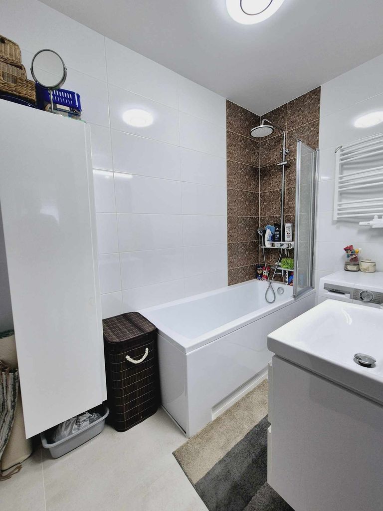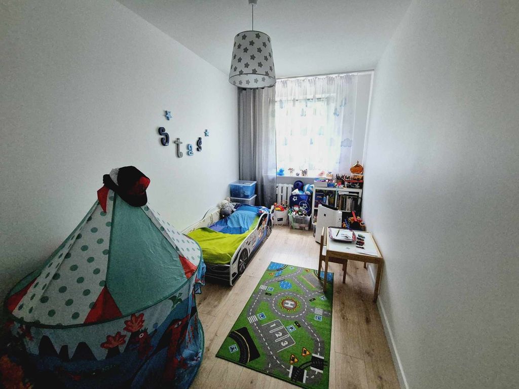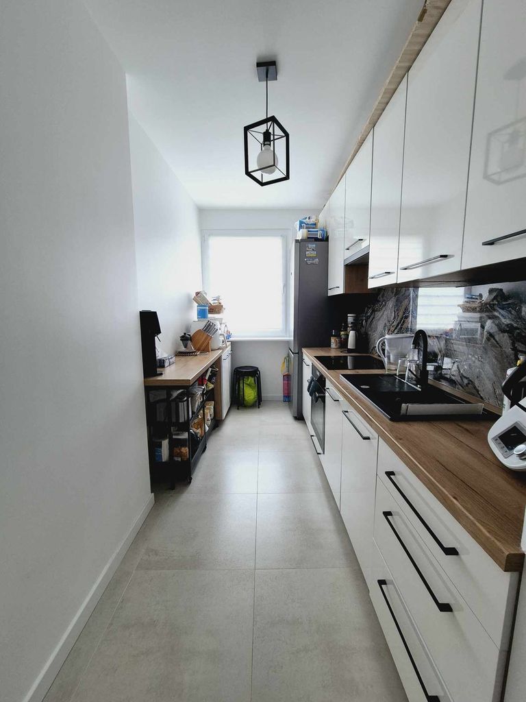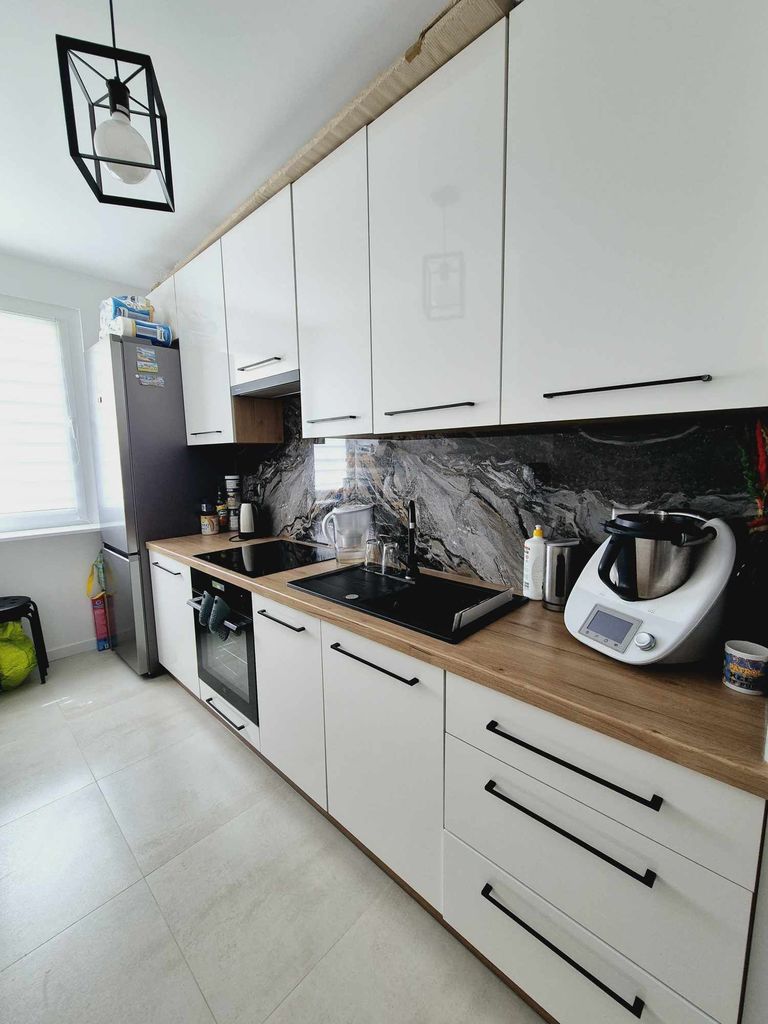 Kuchnia zabudowana białymi meblami z AGD, cały sprzęt zakupiony w 2023 roku ( lodówka, zmywarka, okap, piekarnik elektryczny, płyta indukcyjna). W cenie mieszkania zostają wszystkie meble widoczne na zdjęciach z wyjątkiem dziecięcego łóżka -tj. zabudowa mebli w kuchni z całym sprzętem AGD, 2 duże szafy w zabudowie, meble w salonie oraz sypialni w łazience pralko-suszarka, dwa telewizory. Całe wyposażenie zakupione w 2023 roku)