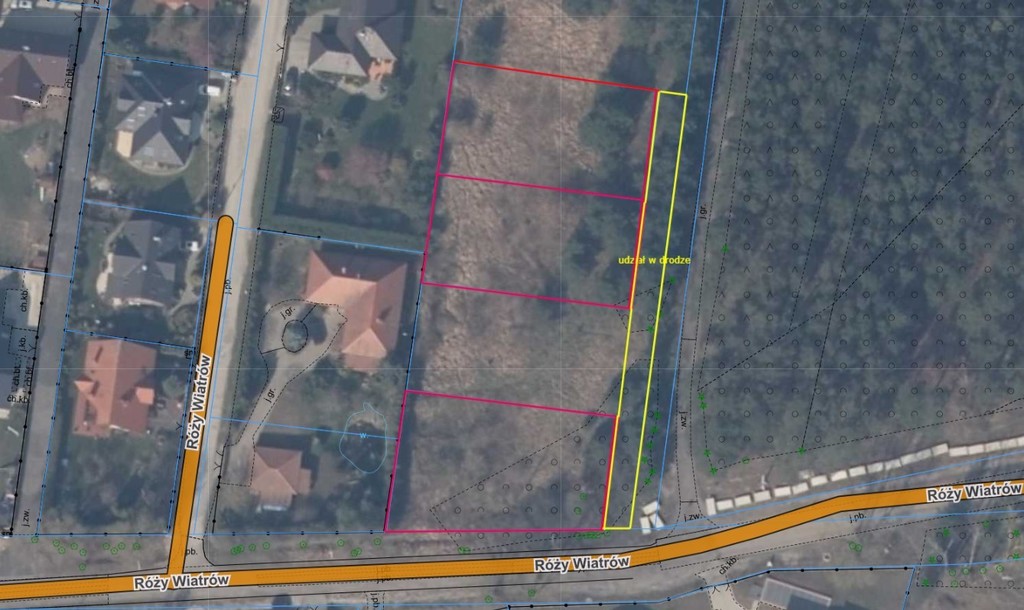Przedmiotem oferty jest działka budowlana o powierzchni 852 m2 wraz z udziałem w działce o powierzchni 420 m2  stanowiącą drogę wewnętrzną, znajdująca się w kompleksie działek przy ul. Róży Wiatrów w Dobrej Szczecińskiej.