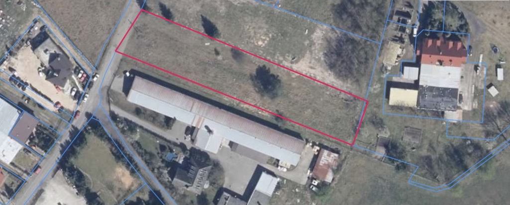 Działka usługowa, płaska, w kształcie zbliżonym do prostokąta o powierzchni 3 500 m2 znajdująca się w Tanowie.