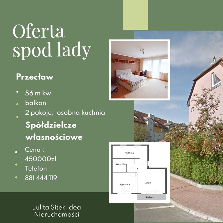 Spół. wł. 2 pokoje, osobna kuchnia, balkon