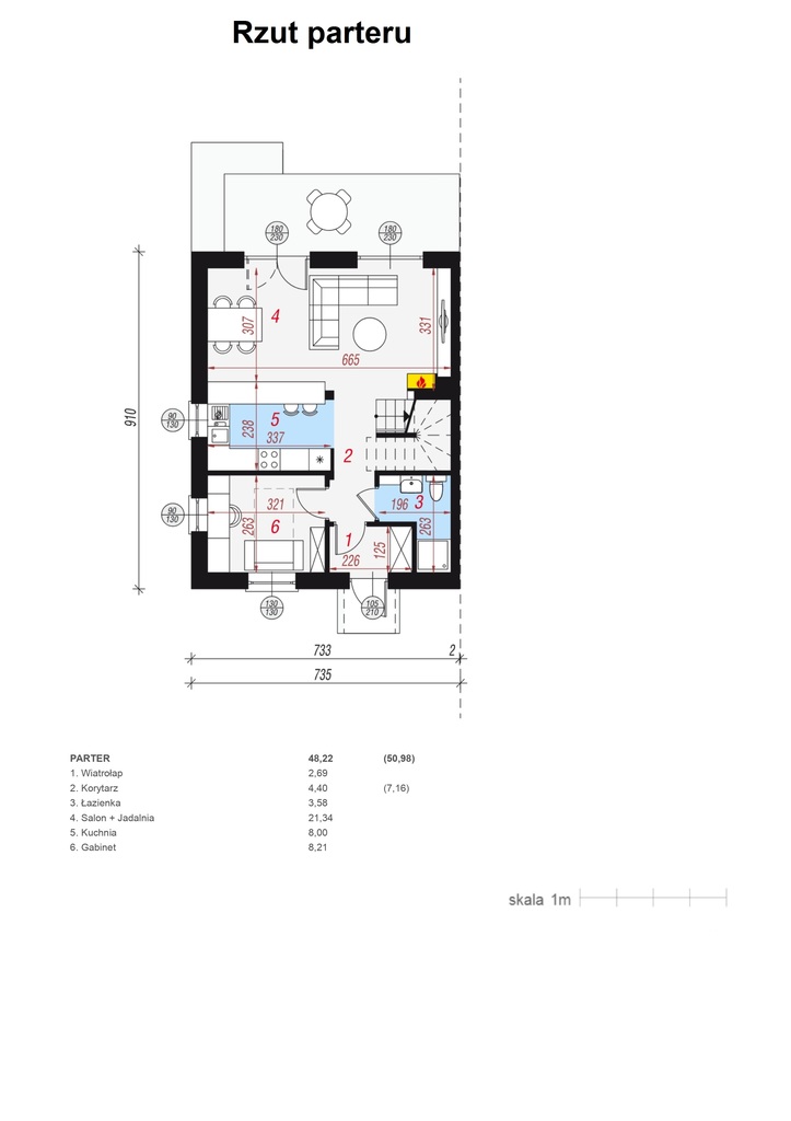 - Salon z jadalnią + Kuchnia 29,34 m2