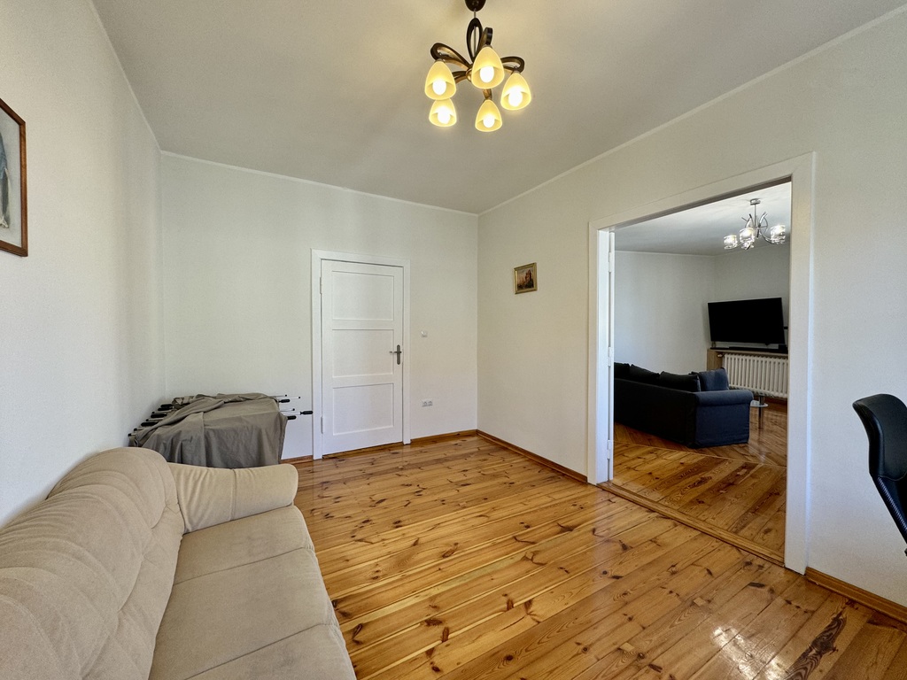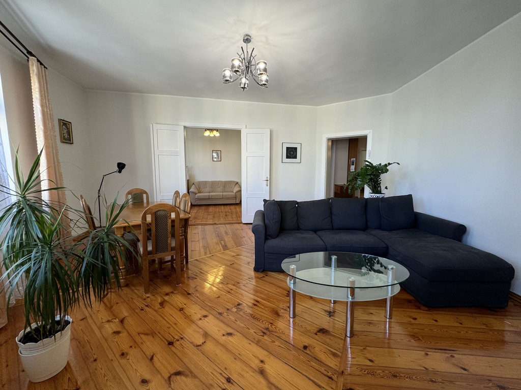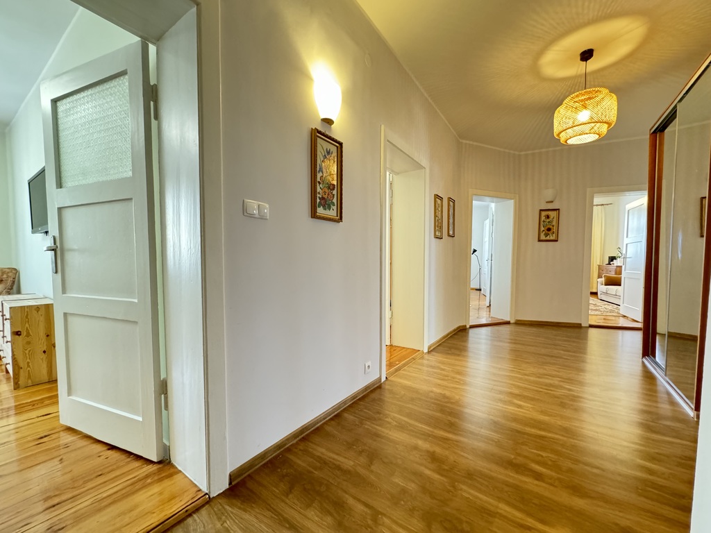 Na powierzchni prawie 118m2 znajdują się 4 rozkładowe pokoje (ok. 18, 19, 20, 29m2), obszerny przedpokój, kuchnia, łazienka z oknem, oraz garderoba ze spiżarnią. Doskonały układ mieszkania, do każdego pomieszczenia wchodzimy z przedpokoju.