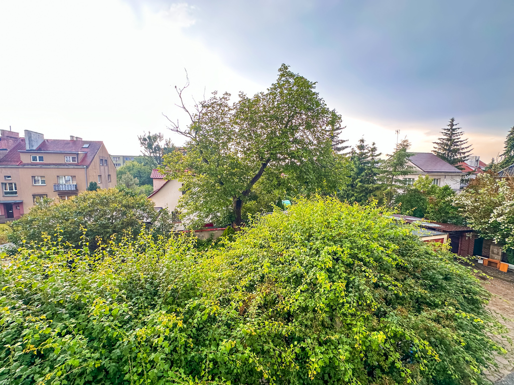 Mieszkanie znajduje się na 1 piętrze niskiego bloku z lat 70-tych. Z okna salonu widok na zieleń i drzewa co zapewnia komfort i prywatność podczas użytkowania.