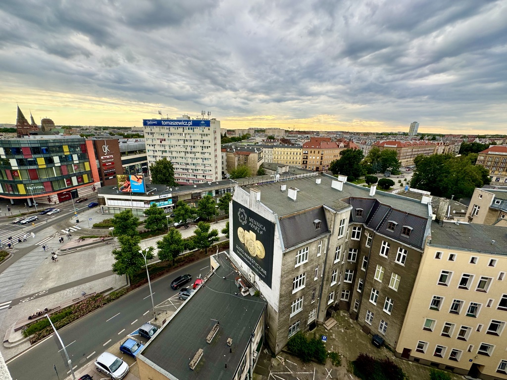 Na sprzedaż słoneczna kawalerka zlokalizowana na 10 piętrze wysokiego budynku w centrum Szczecina wyposażonego w windę!
